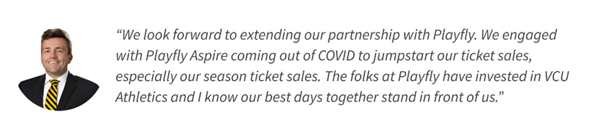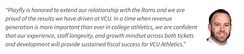 ATLANTA, GA – Virginia Commonwealth University Athletics (VCU) and Playfly Aspire are extending their already record-breaking partnership. Under the leadership of industry veteran Nick Meeson, the dedicated Playfly team has increased revenue production across ticket sales and philanthropic giving to the Ram Athletic fund every year they have been on campus. Compared to pre-Playfly figures, VCU men’s basketball revenue and attendance are up 20%, while women’s basketball and Olympic sport revenue has grown exponentially.